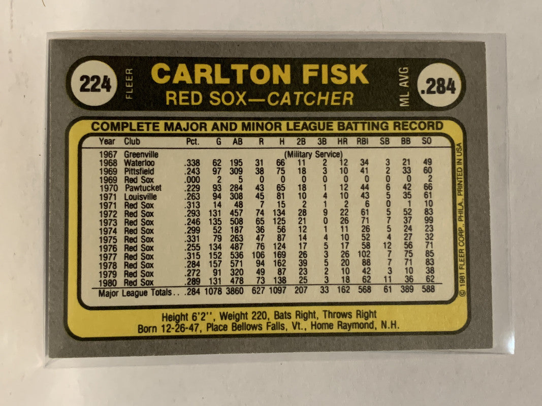 # 224 Carlton Fisk Boston Red Sox 1981 Fleer Baseball Card