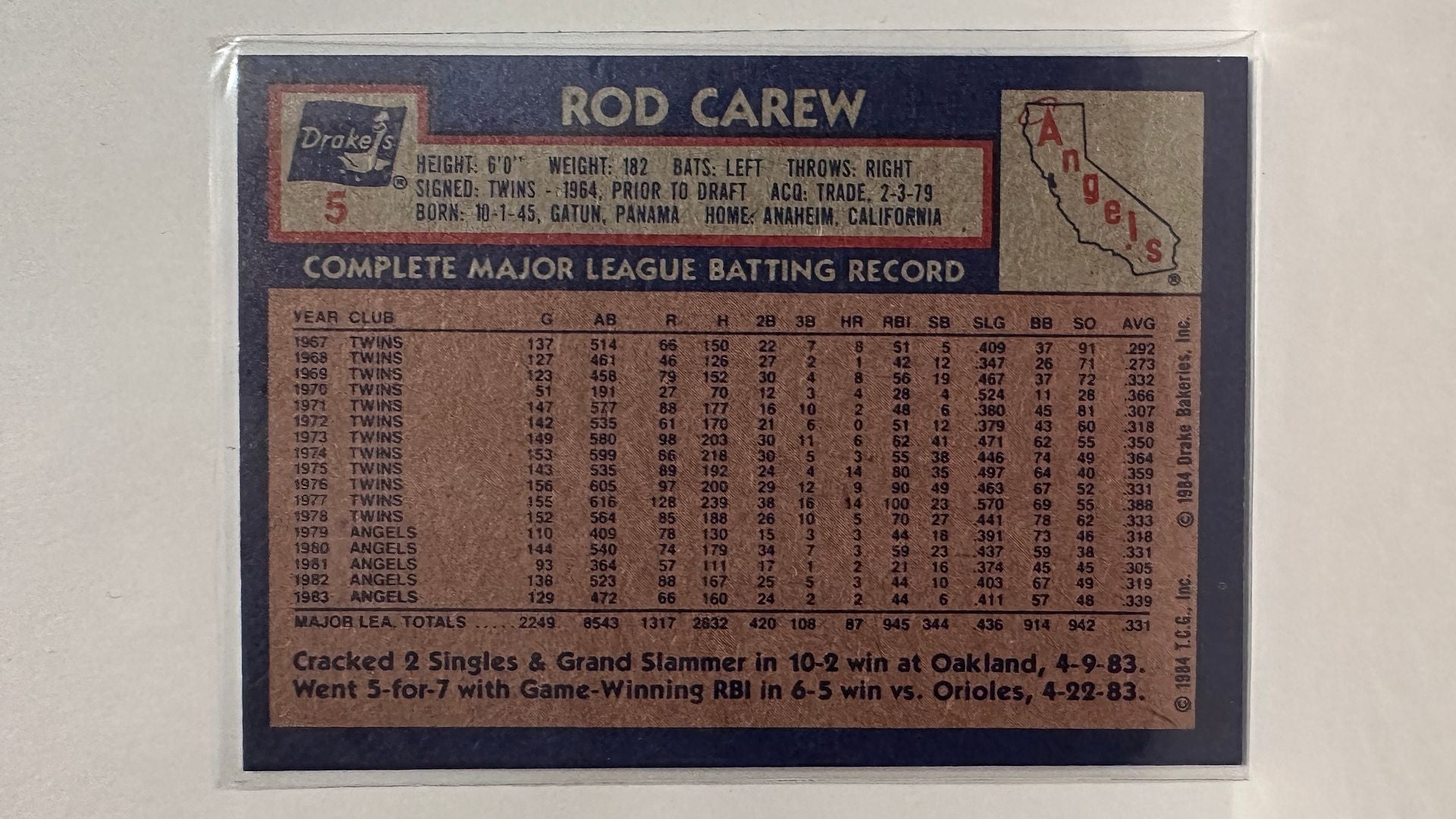 #5 Rod Carew Auto Los Angeles Angels 1984 Topps Baseball Card