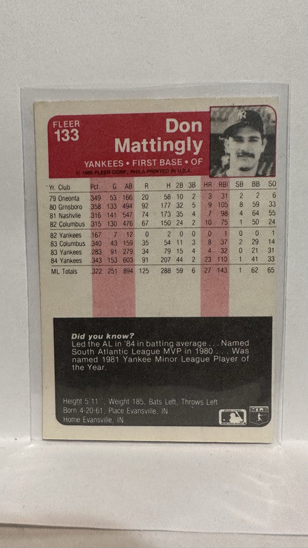 #133 Don Mattingly New York Yankees 1985 Fleer Baseball Card