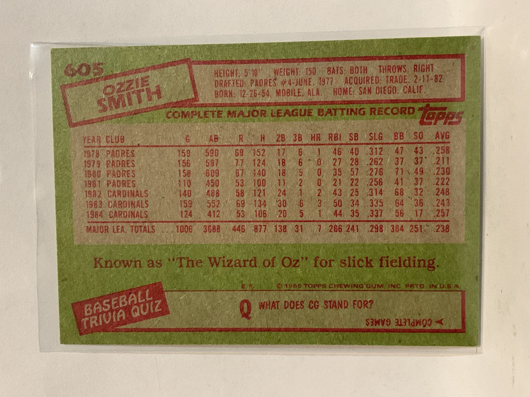 # 605 Ozzie Smith St Louis Cardinals 1985 Topps Baseball Card