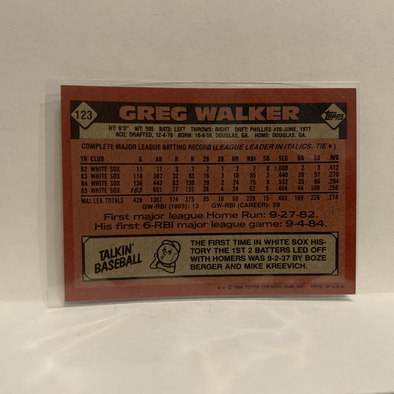 #123 Greg Walker Chicago White Sox 1986 Topps Baseball Card IF