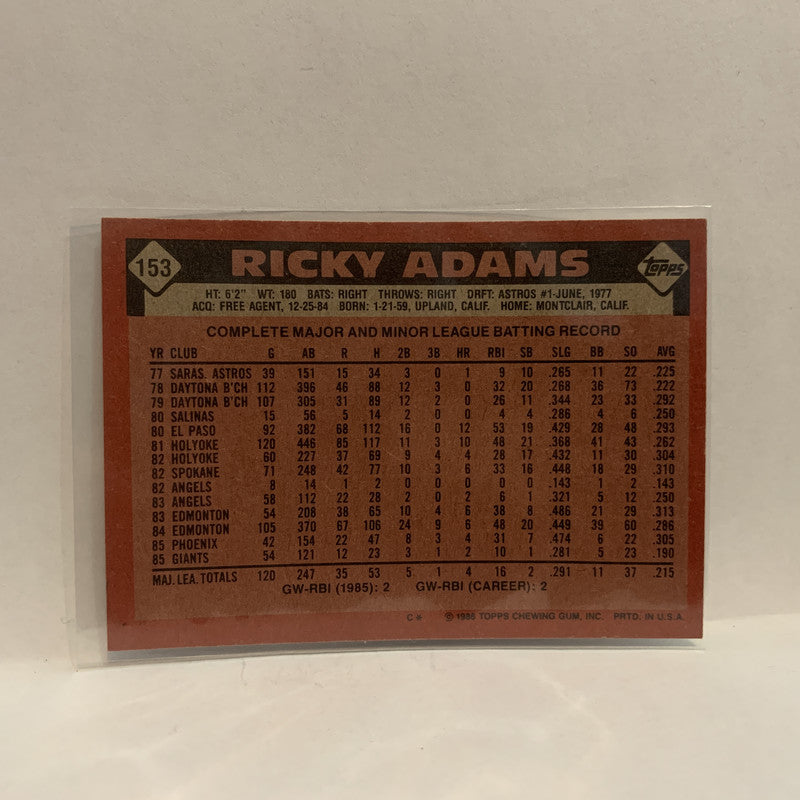 #153 Ricky Adams San Francisco Giants 1986 Topps Baseball Card IE
