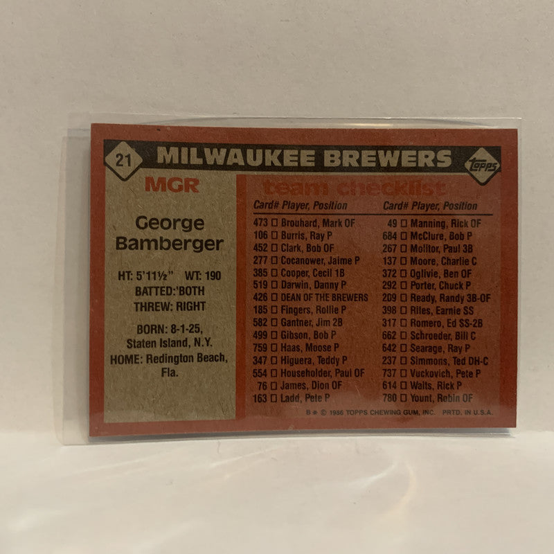 #21 George Bamberger Manager Milwaukee Brewers 1986 Topps Baseball Card IE