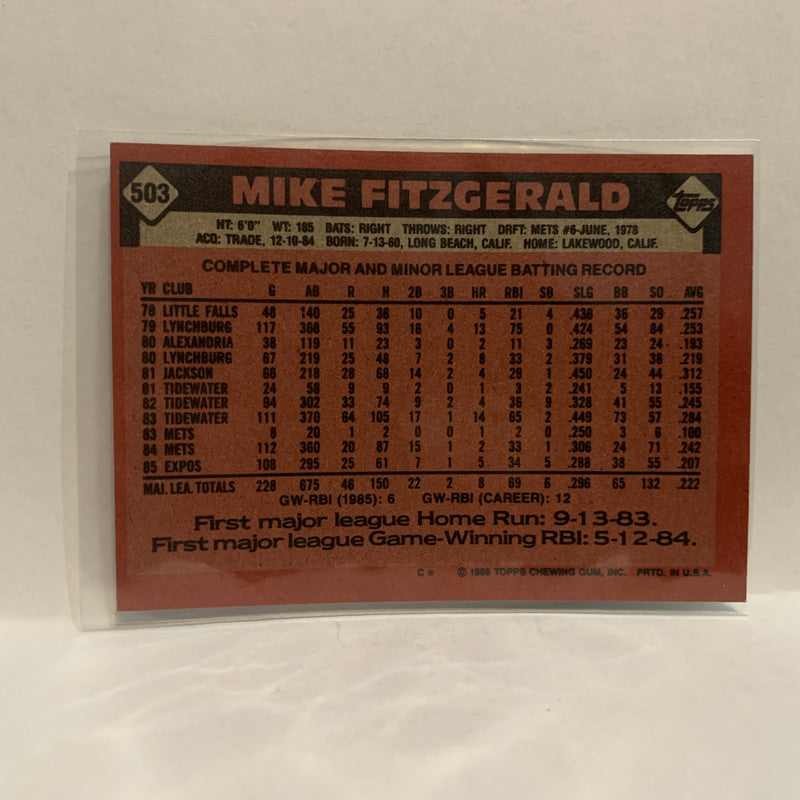 #503 Mike Fitzgerald Montreal Expos 1986 Topps Baseball Card IF