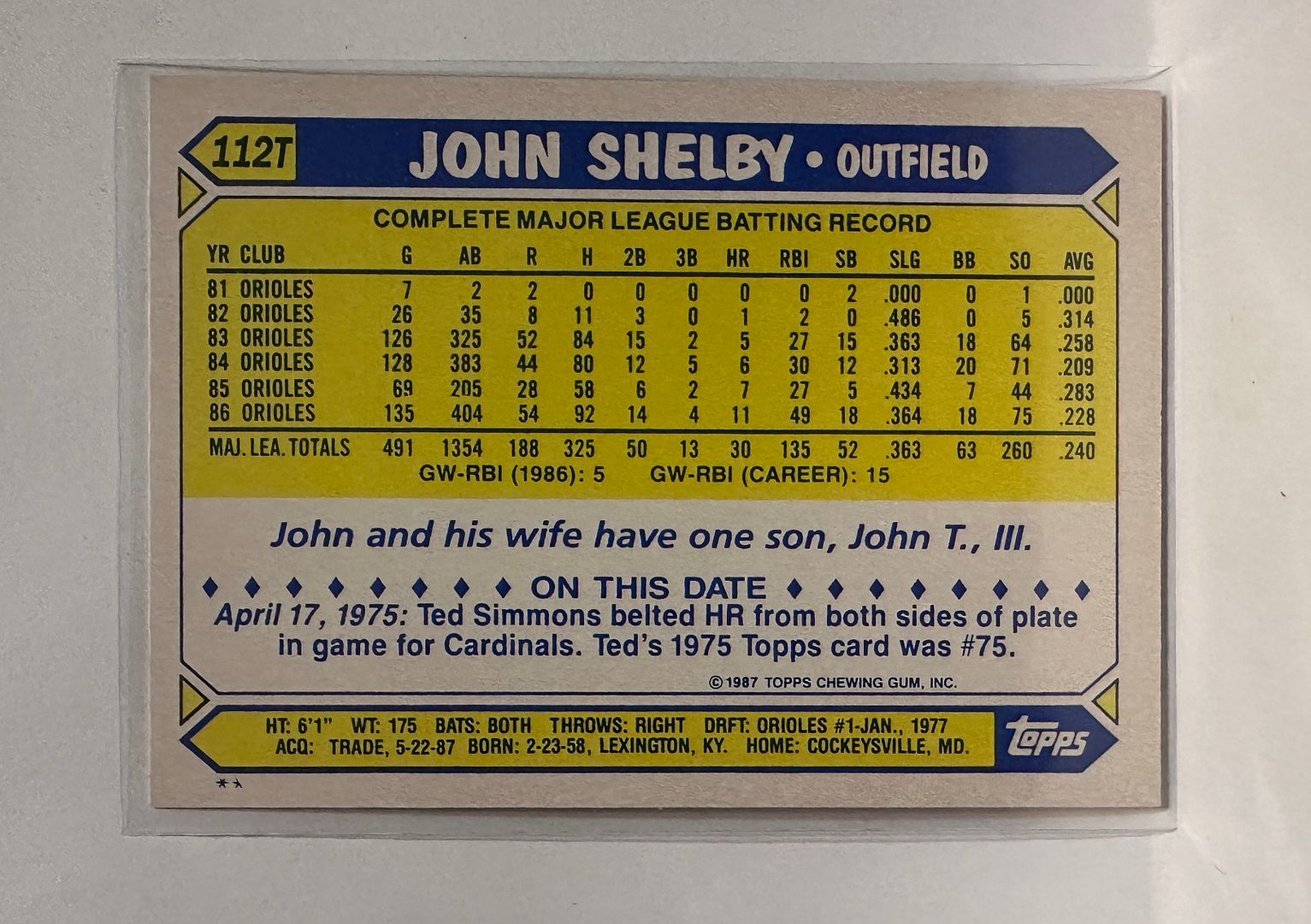 #112T John Shelby Los Angeles Dodgers 1987 Topps Baseball Card
