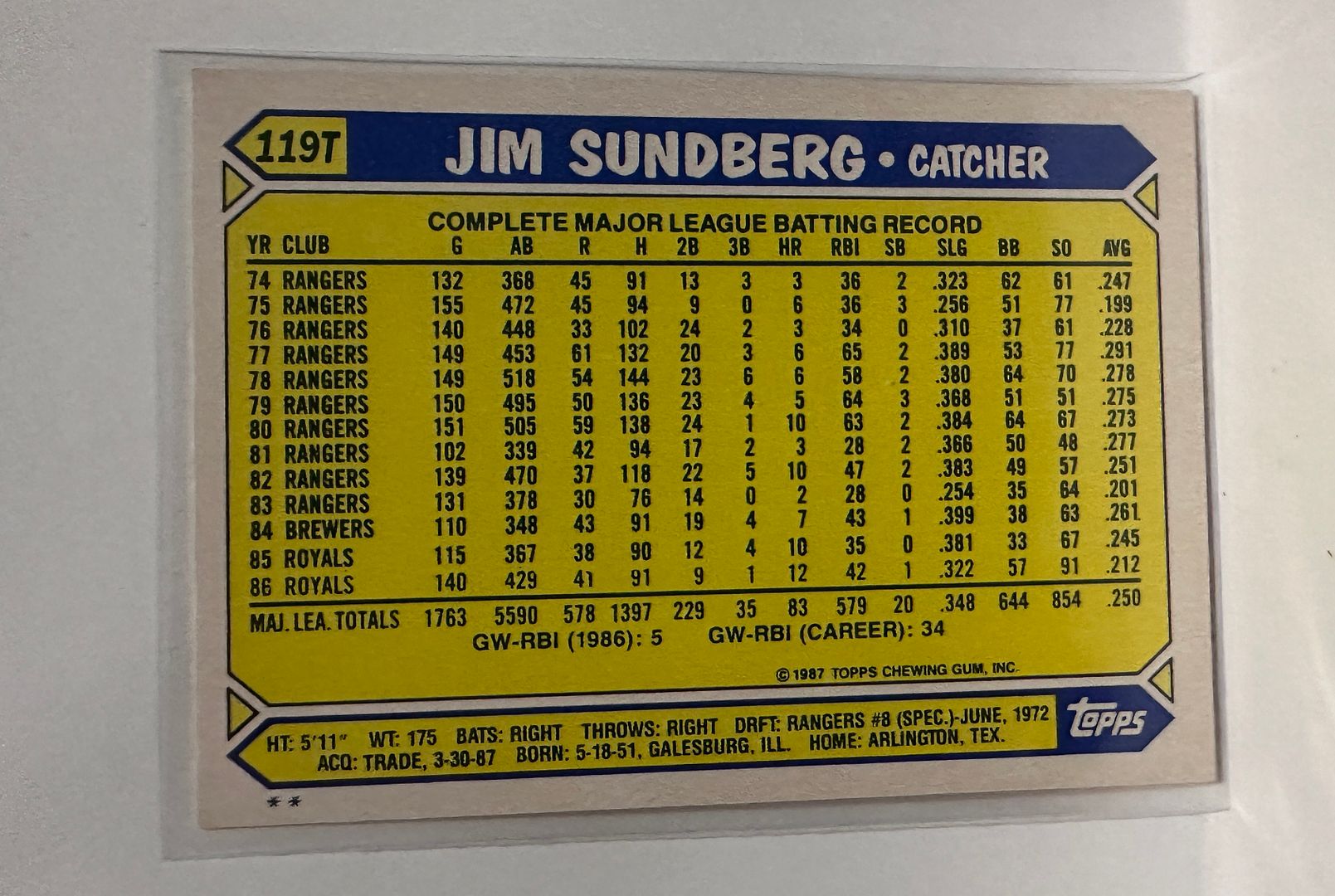 #119T Jim Sundberg Chicago Cubs 1987 Topps Baseball Card