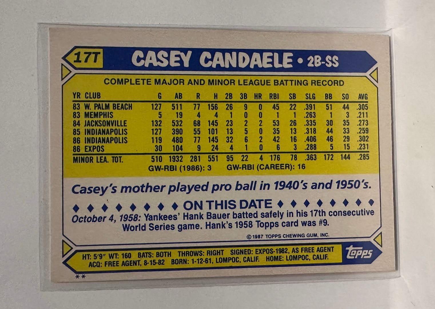 #17T Casey Candaele Montreal Expos 1987 Topps Baseball Card