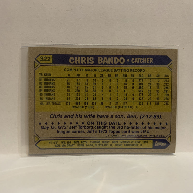 #322 Chris Bando Cleveland Indians 1987 Topps Baseball Card IN