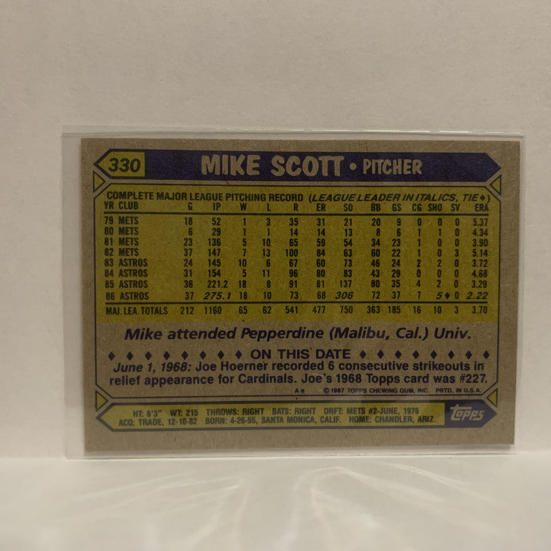 #330 Mike Scott Houston Astros 1987 Topps Baseball Card JF