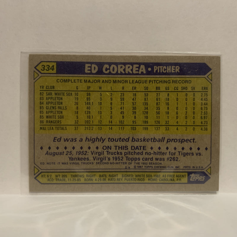 #334 Ed Correa Texas Rangers 1987 Topps Baseball Card JF