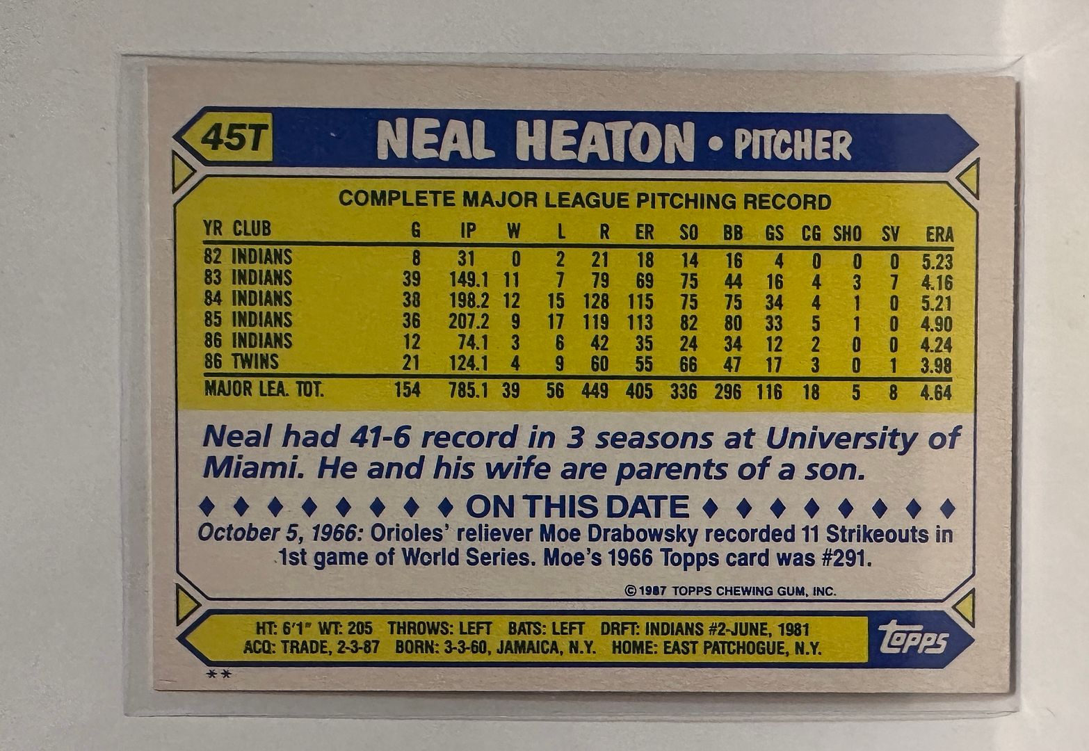 #45T Neal Heaton Montreal Expos 1987 Topps Baseball Card