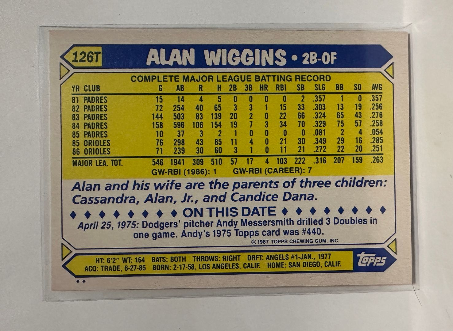 #126T Alan Wiggins Baltimore Orioles 1987 Topps Baseball Card