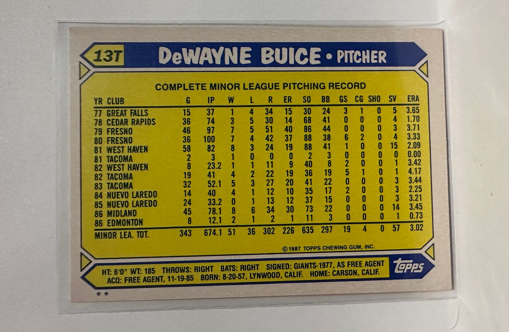 #13T DeWayne Buice Los Angeles Angels 1987 Topps Baseball Card