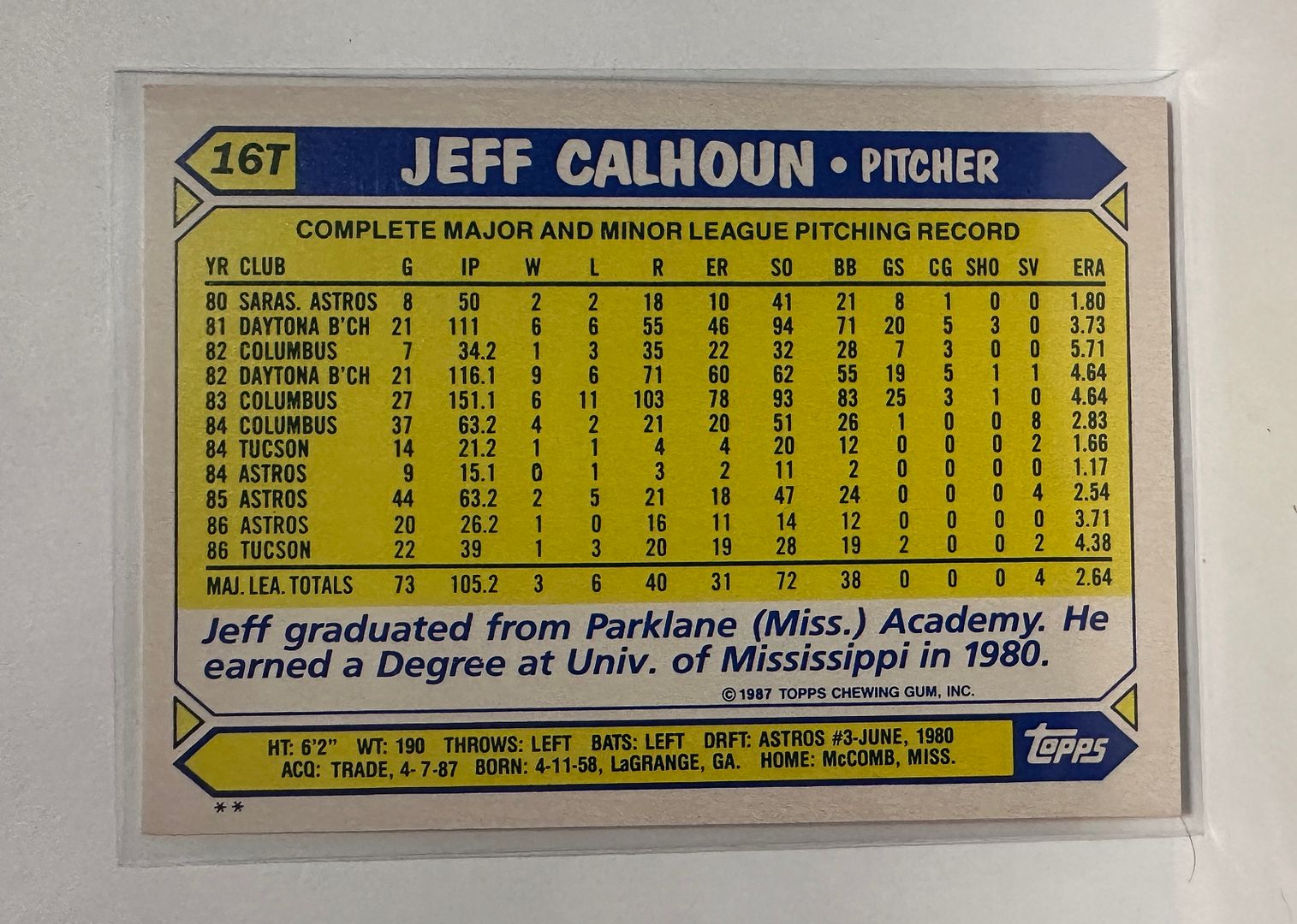 #16T Jeff Calhoun Philadelphia Phillies 1987 Topps Baseball Card