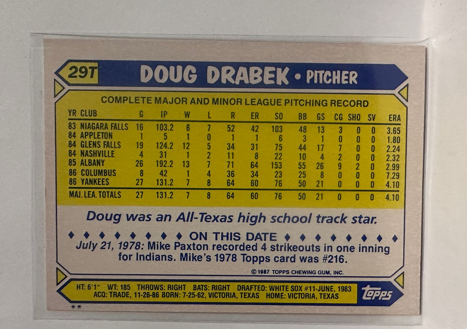 #29T Doug Drabek Pittsburgh Pirates 1987 Topps Baseball Card