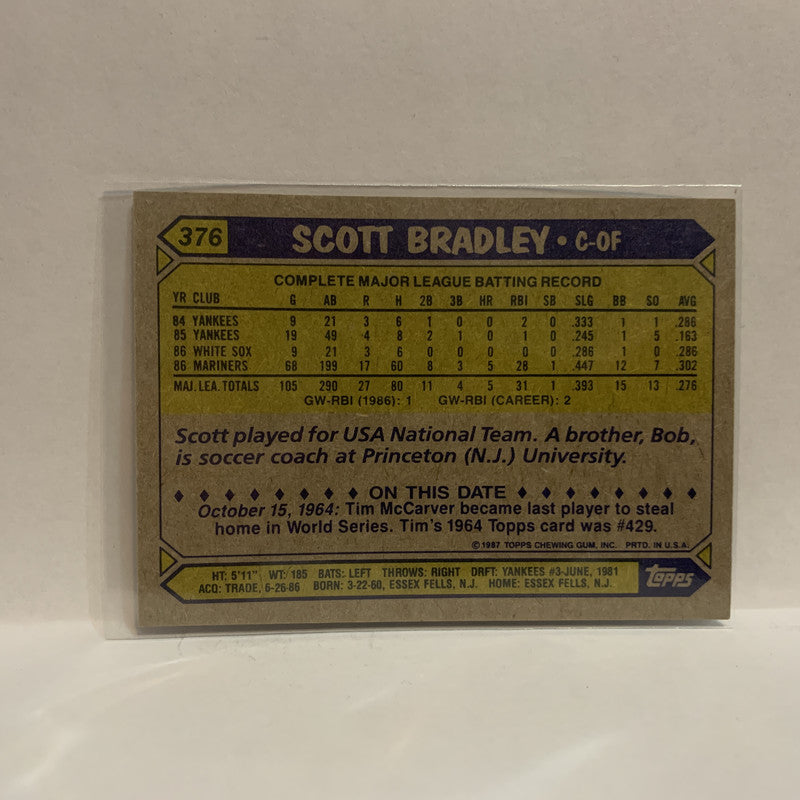 #376 Scott Bradley Seattle Mariners 1987 Topps Baseball Card IN