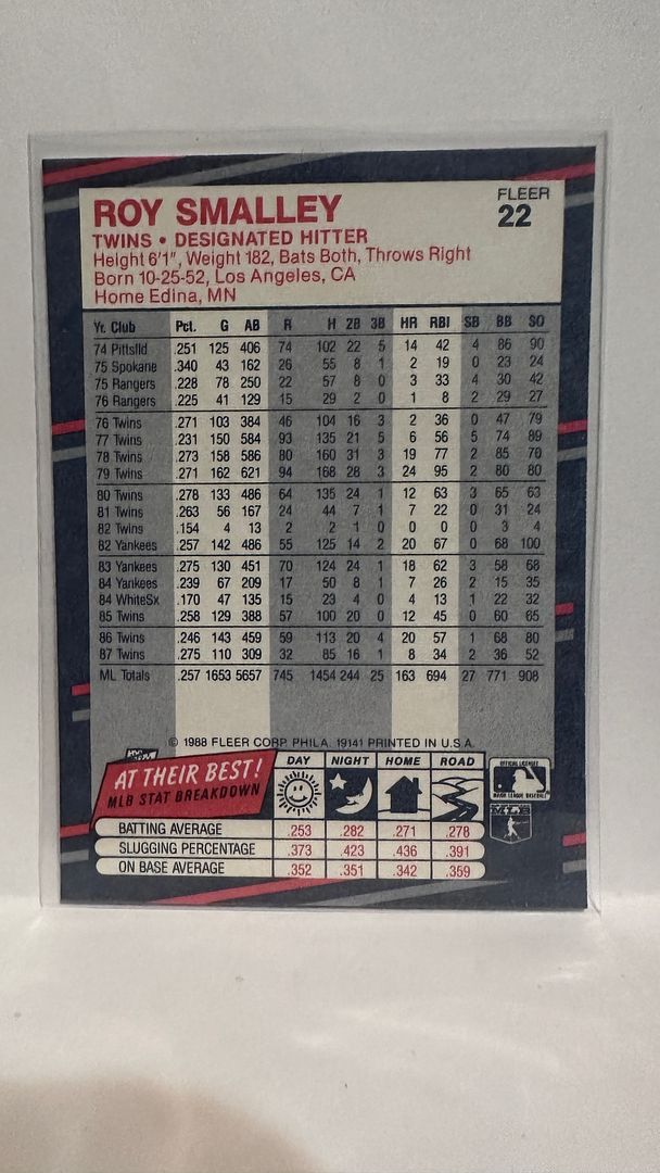 #22 Roy Smalley Minnesota Twins 1988 Fleer Baseball Card