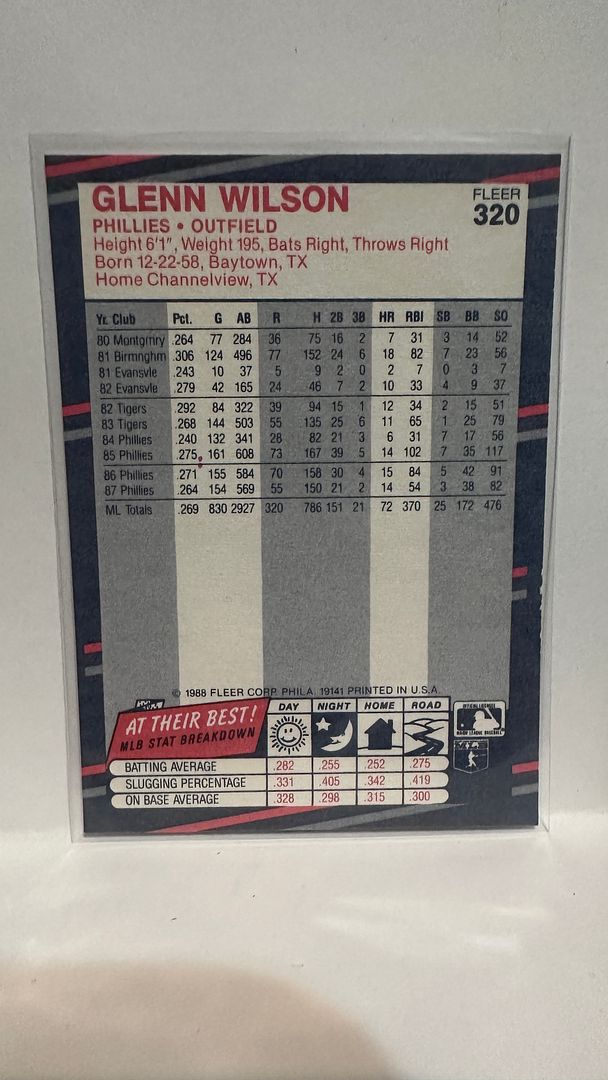 #320 Glenn Wilson Philadelphia Phillies 1988 Fleer Baseball Card