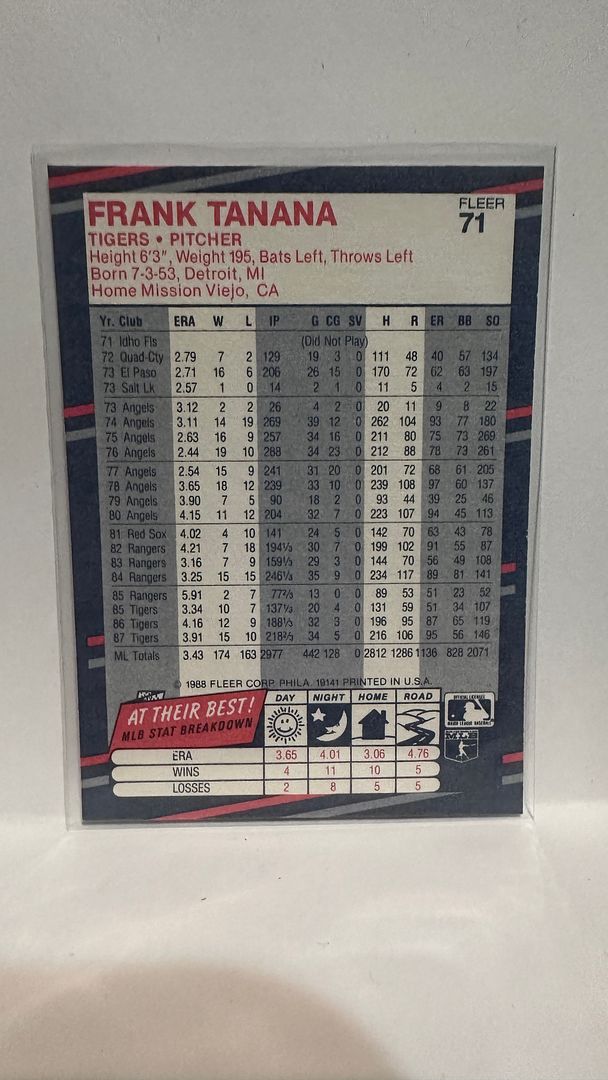 #71 Frank Tanana Detroit Tigers 1988 Fleer Baseball Card