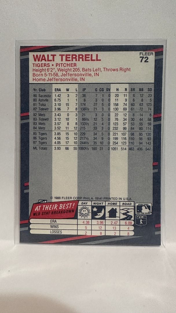 #72 Walt Terrell Detroit Tigers 1988 Fleer Baseball Card