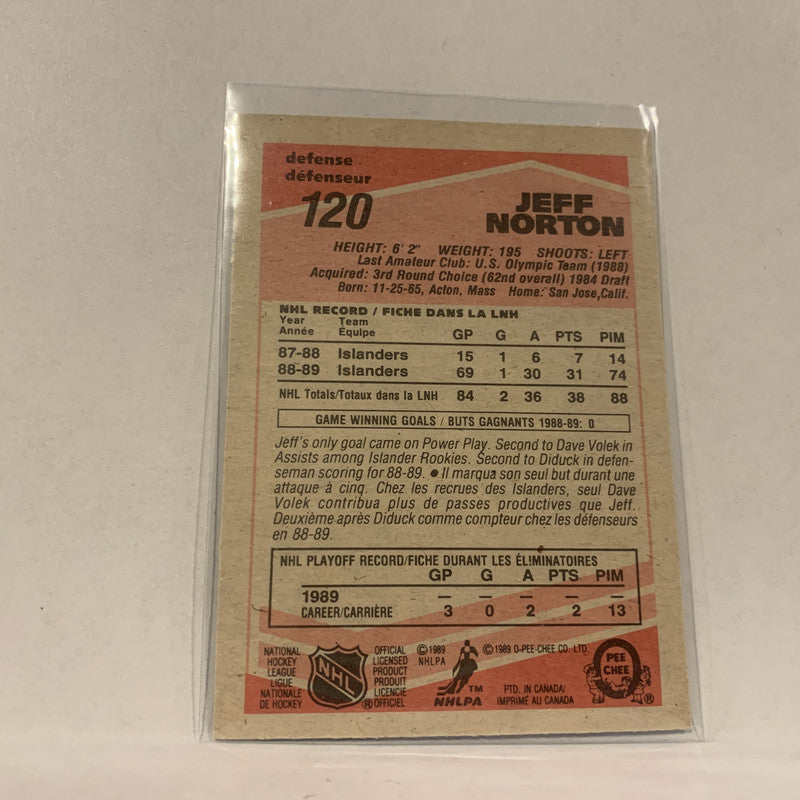 #120 Jeff Norton New York Islanders 1989-90 O-Pee-Chee Hockey Card AU