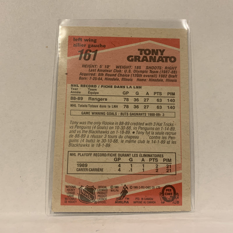 #161 Tony Granato New York Rangers 1989-90 O-Pee-Chee Hockey Card A1Y