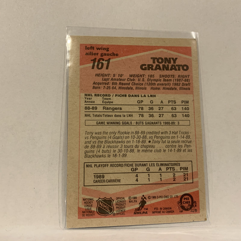 #161 Tony Granato New York Rangers 1989-90 O-Pee-Chee Hockey Card AF