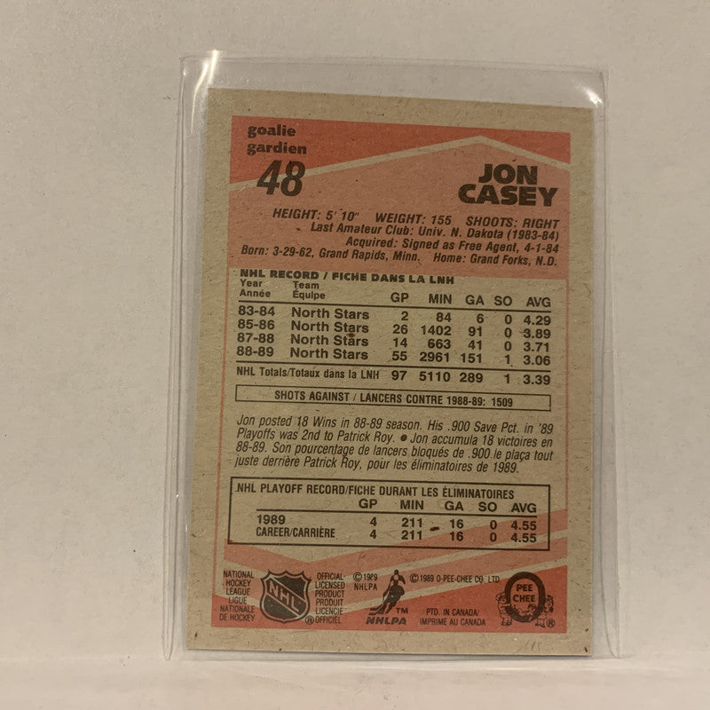 #48 Jon Casey Minnesota North Stars 1989-90 O-Pee-Chee Hockey Card A2W