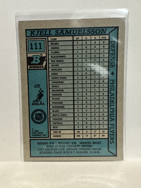 #111 Kjell Samuelsson Philadelphia Flyers 1990-91 Bowman Hockey Card