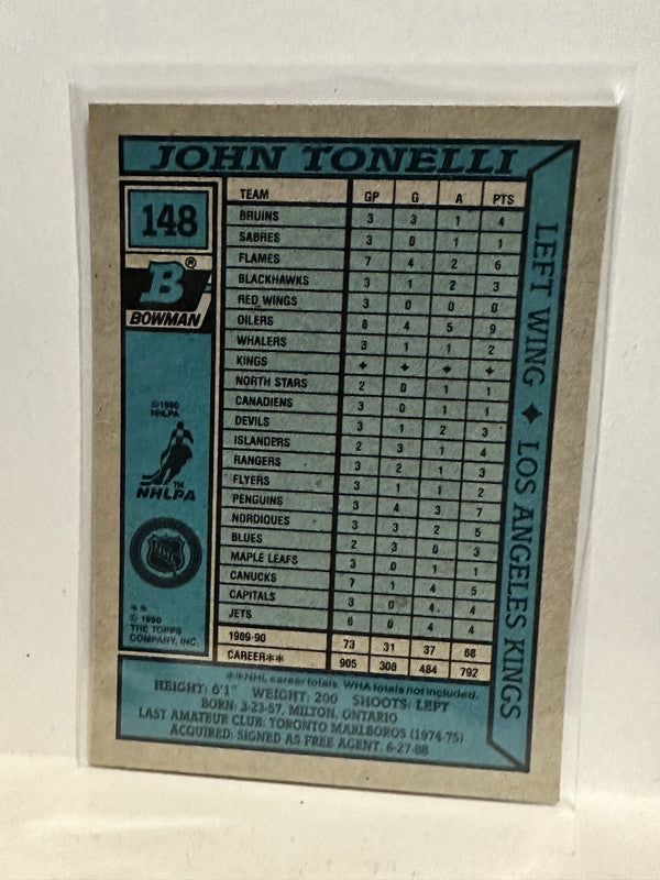#148 John Tonelli Los Angeles Kings 1990-91 Bowman Hockey Card