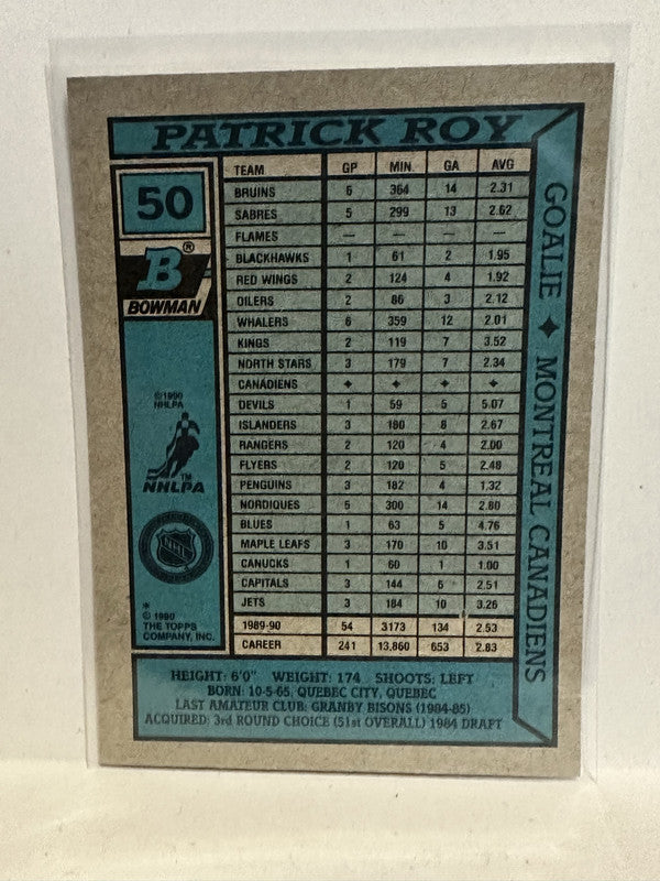 #50 Patrick Roy Montreal Canadiens 1990-91 Bowman Hockey Card