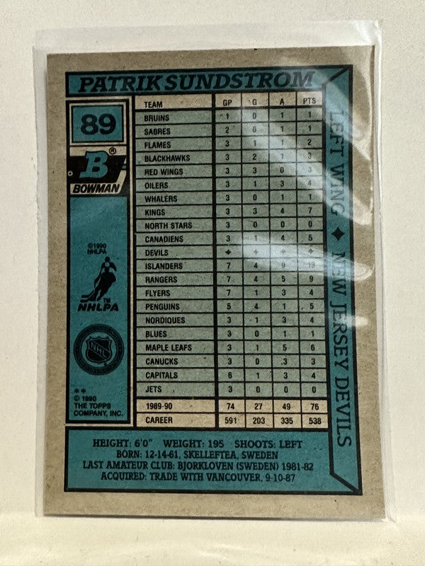 #89 Patrik Sundstrom New Jersey Devils 1990-91 Bowman Hockey Card