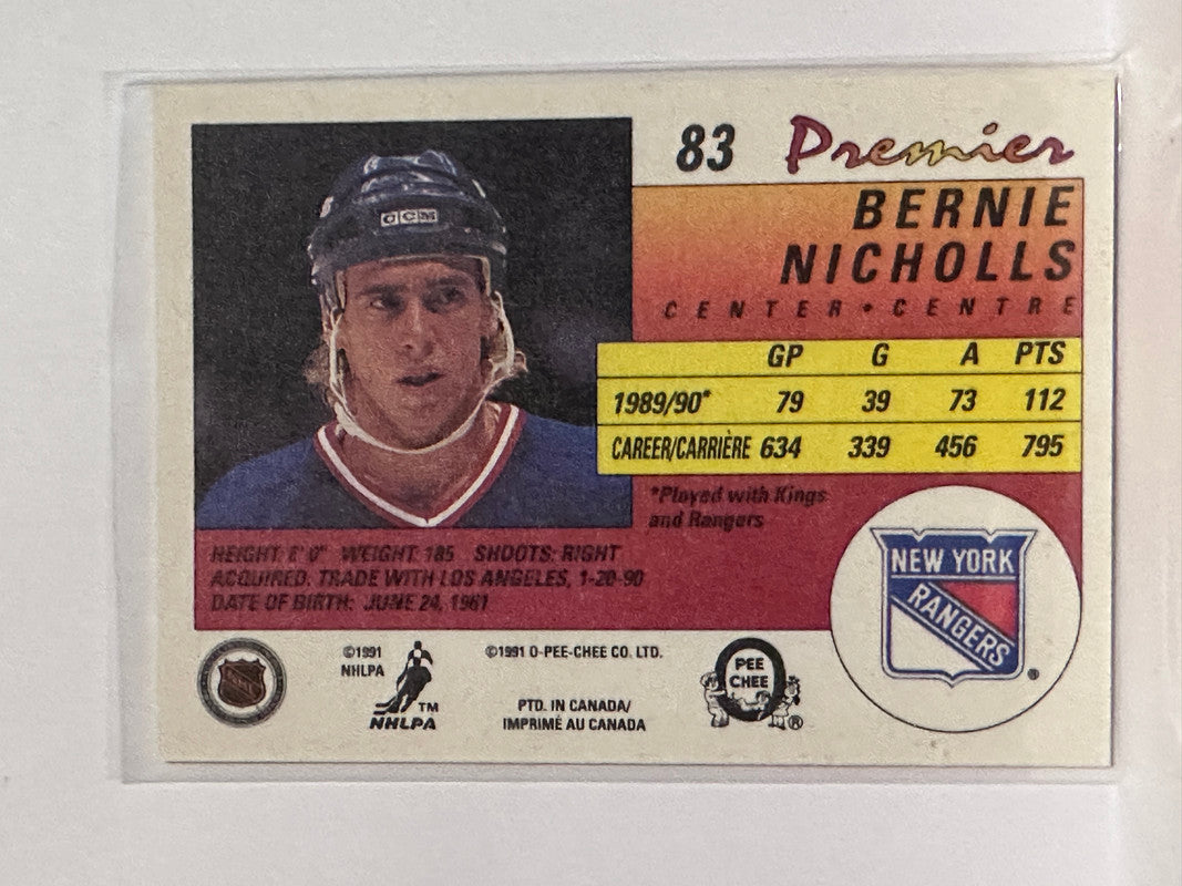 #83 Bernie Nicholls New York Rangers 90-91 O-Pee-Chee Premier Hockey Card
