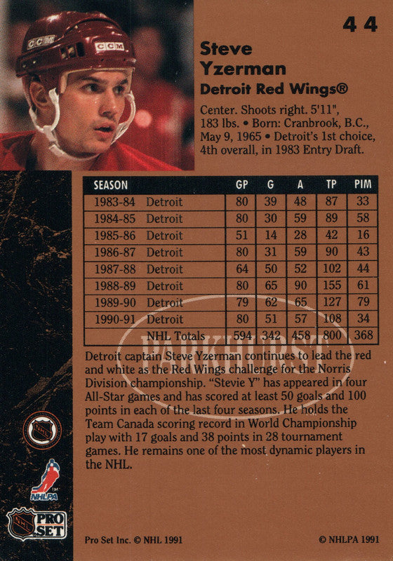 #44 Steve Yzerman Detroit Red Wings 1990-91 Parkhurst Hockey Card OZ