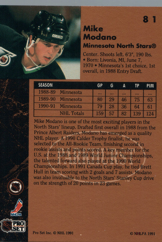 #81 Mike Modano Minnesota North Stars 1990-91 Parkhurst Hockey Card OZA