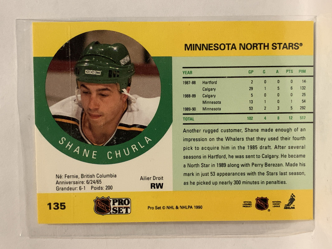 #135 Shane Churla Minnesota Twins 1990-91 Pro Set Hockey Card
