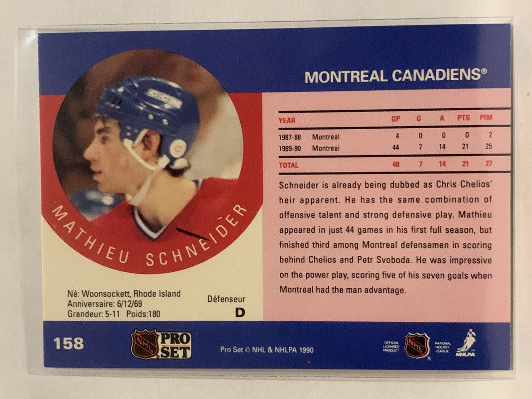 #158 Mathieu Schneider Montreal Canadiens 1990-91 Pro Set Hockey Card
