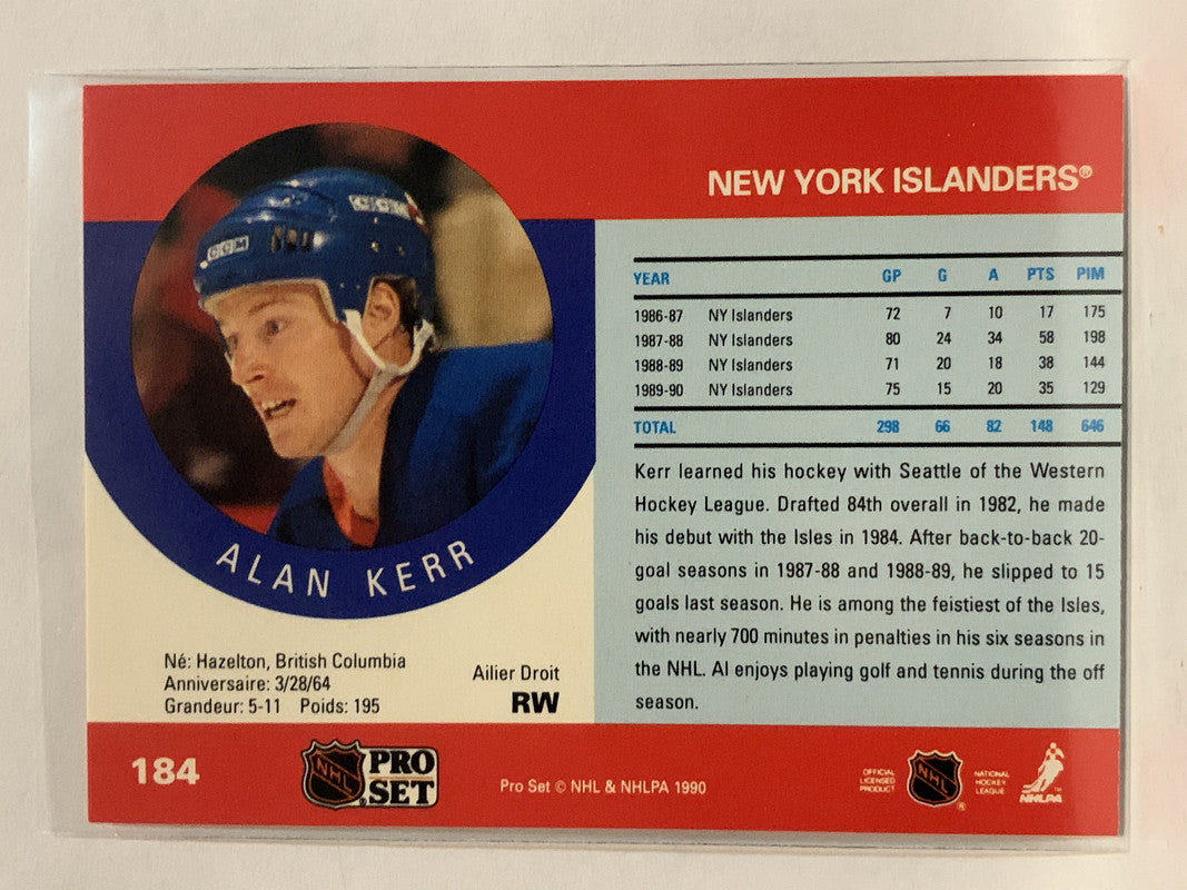 #184 Alan Kerr New York Islanders 1990-91 Pro Set Hockey Card