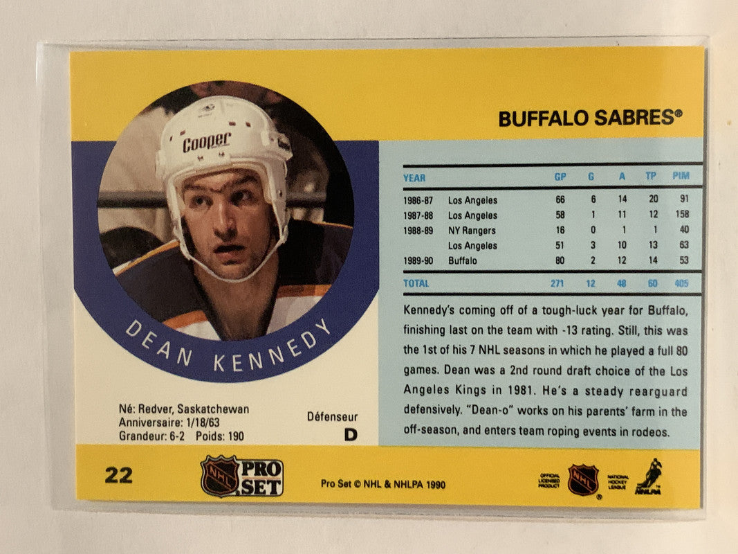 #22 Dean Kennedy Buffalo Sabres 1990-91 Pro Set Hockey Card