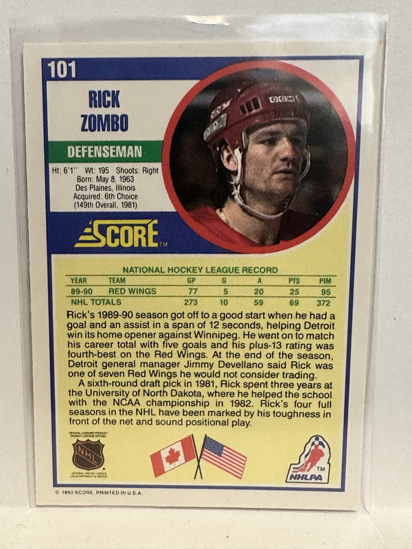 #101 Rick Zombo Detroit Red Wings 1990-91 Score Hockey Card