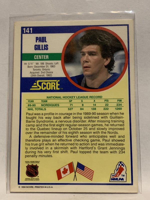 #141 Paul Gillis Quebec Nordiques 1990-91 Score Hockey Card