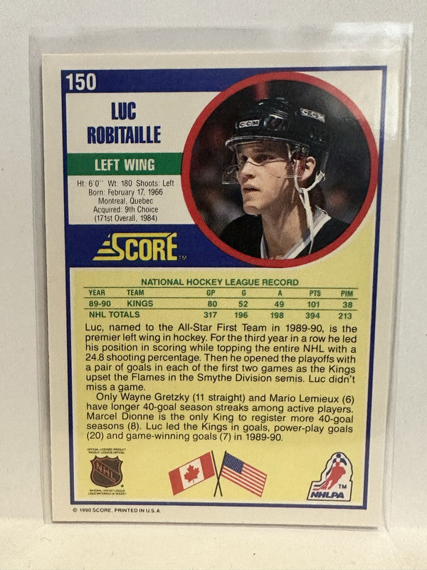 #150 Luc Robitaille Los Angeles Kings 1990-91 Score Hockey Card
