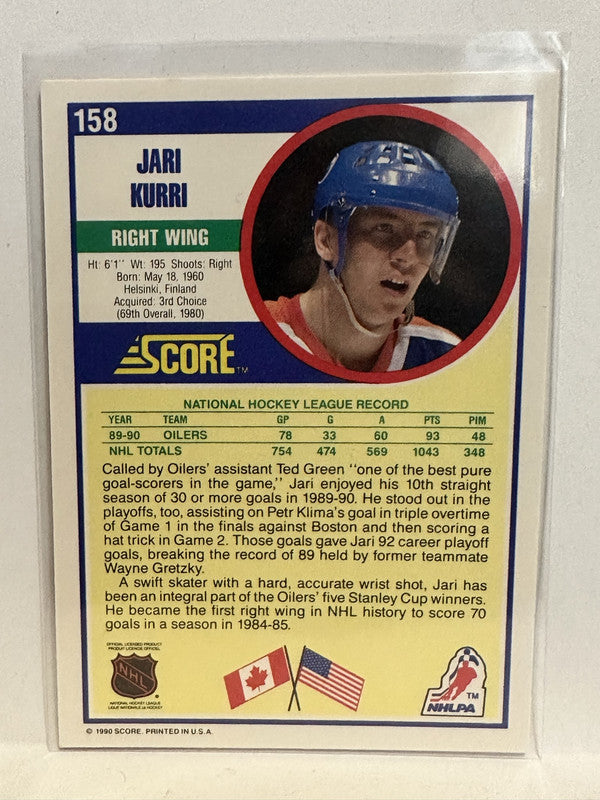 #158 Jari Kurri Edmonton Oilers 1990-91 Score Hockey Card
