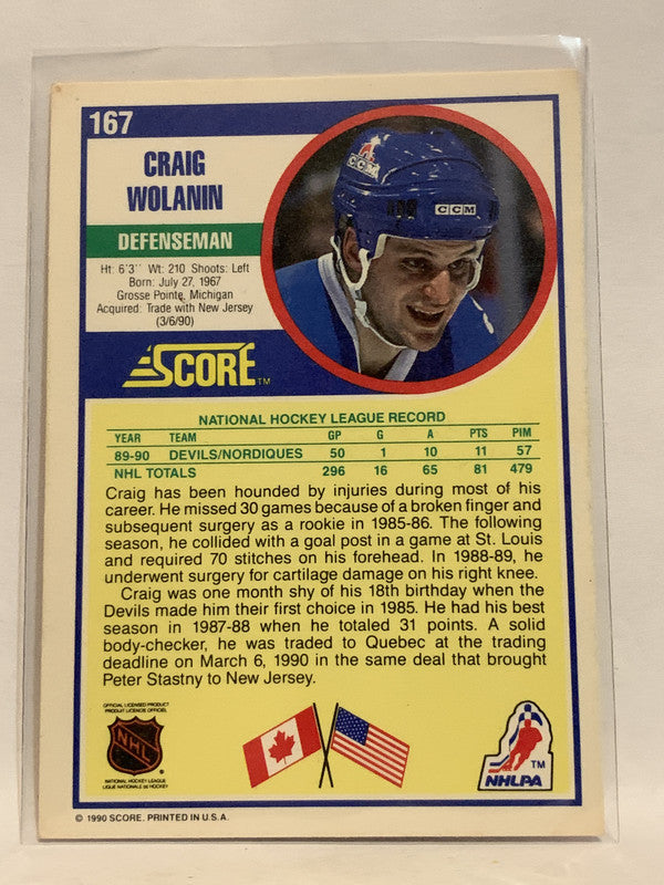 #167 Craig Wolanin Quebec Nordiques 1990-91 Score Hockey Card