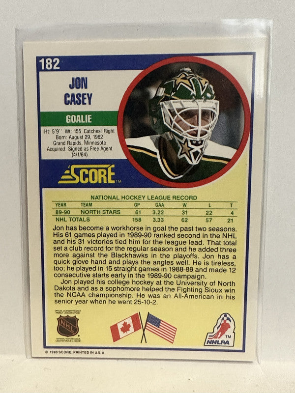 #182 Jon Casey Minnesota North Stars 1990-91 Score Hockey Card