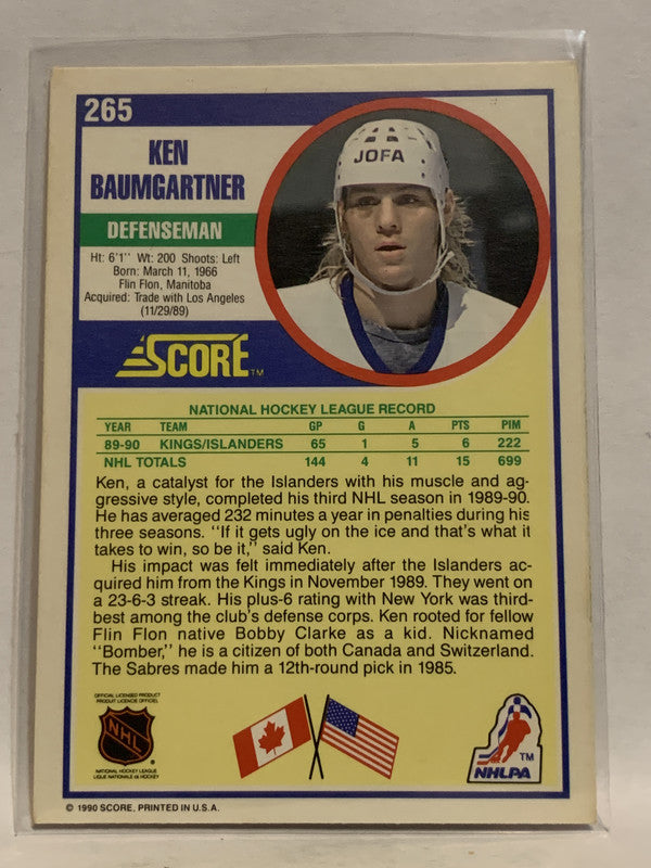 #265 Ken Baumgartner New Islanders 1990-91 Score Hockey Card