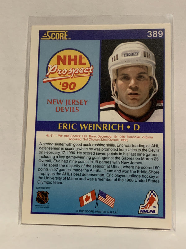 #389 Eric Weinrich Rookie New Jersey Devils 1990-91 Score Hockey Card NHL