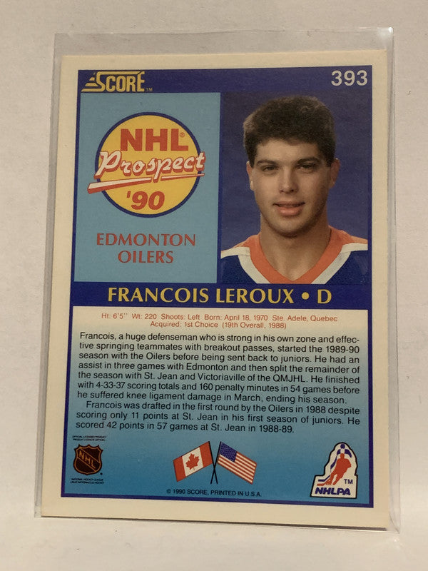 #393 Francois Leroux Rookie Edmonton Oilers 1990-91 Score Hockey Card NHL
