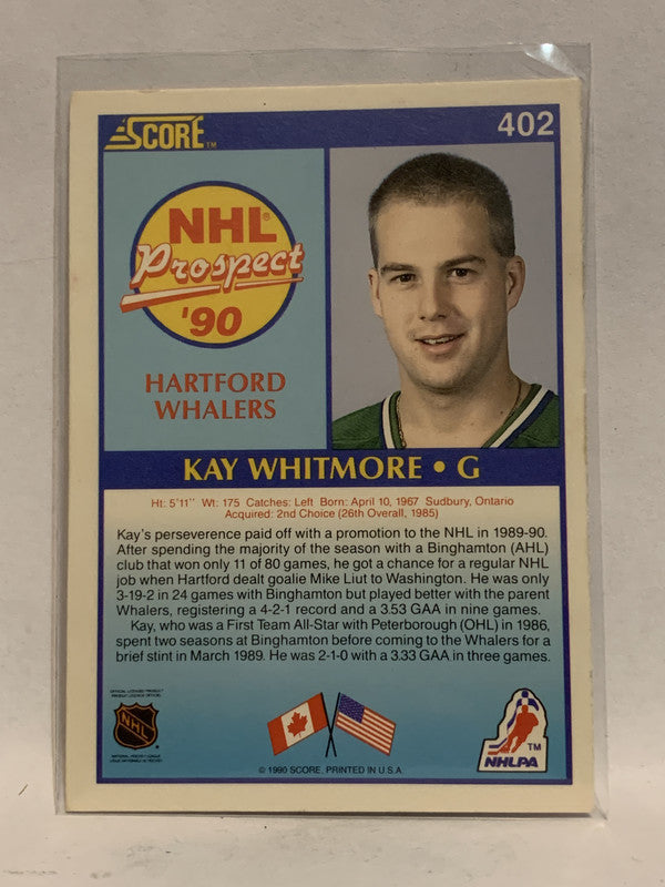 # 402 Kay Whitmore Rookie Hartford Whalers 1990-91 Score Hockey Card