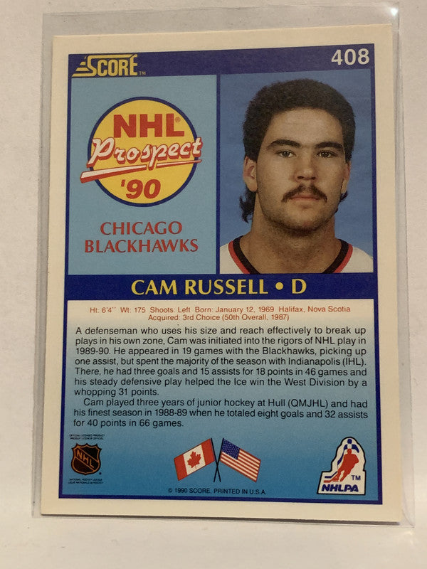 #408 Cam Russell Rookie Chicago Blackhawks 1990-91 Score Hockey Card NHL